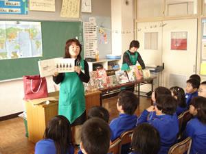 年間を通じて多くの子ども達がクラスや学年単位で、図書館へ見学や学習のために訪れます。多くの場合、司書が図書館の利用についてのマナーや図書の分類についての説明を紙芝居を使って行います。そして、来館してくれたお礼として、読み聞かせなども行っています。
