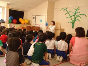 市内の公立、市立保育所、幼稚園、小学校に図書館の司書とボランティアが訪問し、おはなし会を開催しています。おはなしを通じて読書の基礎となる「聞く力」を身につけることができます。どこの子ども達もおはなしが大好きです。